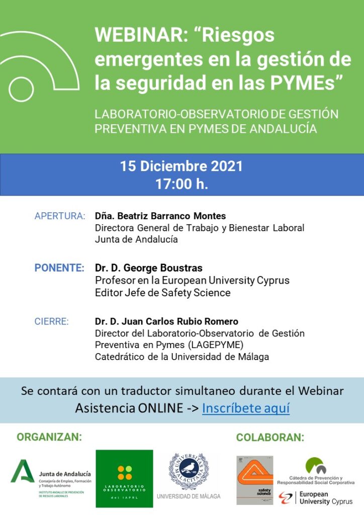 | Organizador: | LABORATORIO-OBSERVATORIO DE GESTIÓN PREVENTIVA EN PYMES DE ANDALUCÍA Y CÁTEDRA DE PREVENCIÓN Y RESPONSABILIDAD SOCIAL CORPORATIVA |